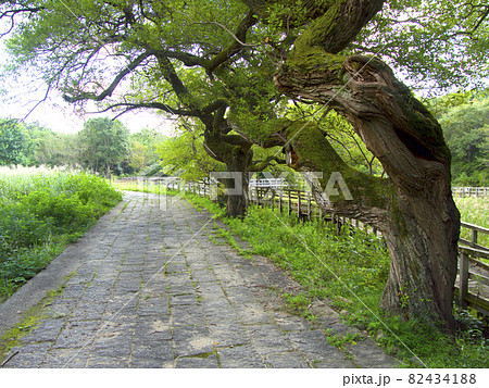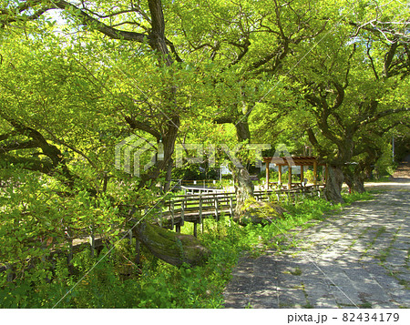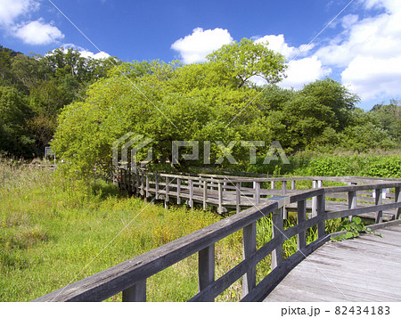 仁川渓谷の上流域・広川原の「甲山なかよし池」/アカメヤナギの並木のある遊歩道/兵庫県西宮市