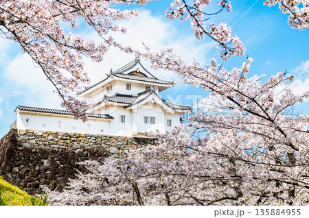 山梨 桜満開の舞鶴城公園 稲荷櫓