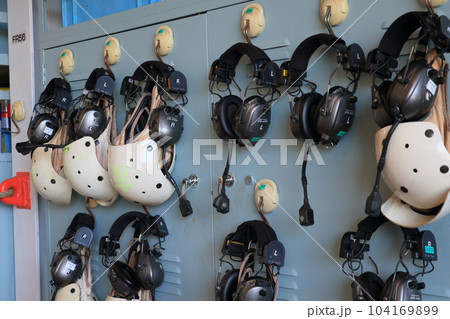 ヘリコプター誘導員のヘルメット ヘッドセット