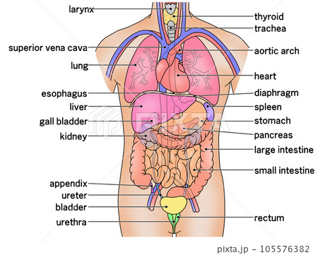 Human viscera internal organs anatomy illustration without labels lungs heart liver stomach intestines medical diagram