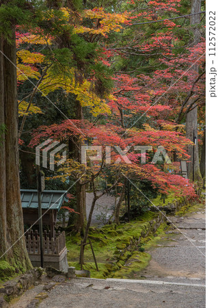秋の西明寺(参道・滋賀県甲良町・縦構図)