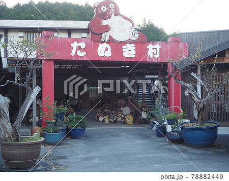 滋賀県甲賀市信楽町の狸の焼き物を撮影