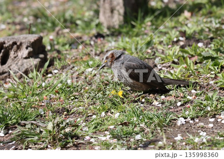 タンポポの花を食べるヒヨドリ