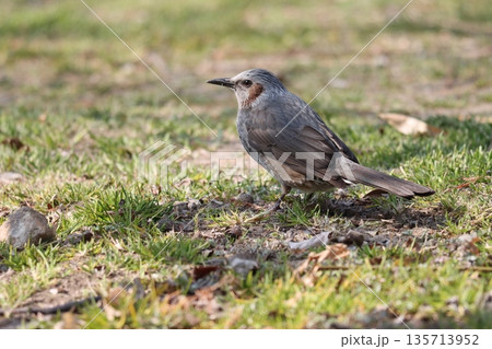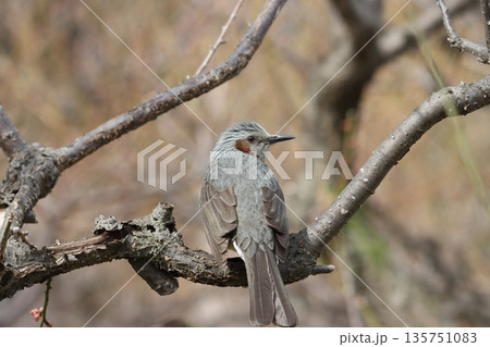 茶色いほっぺが特徴的なヒヨドリ