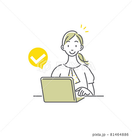 インターネットで手続きをする女性 シンプルでお洒落な線画イラスト