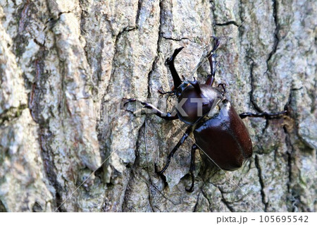 ゆずの里毛呂山町の雑木林で木に登るカブトムシの生態写真
