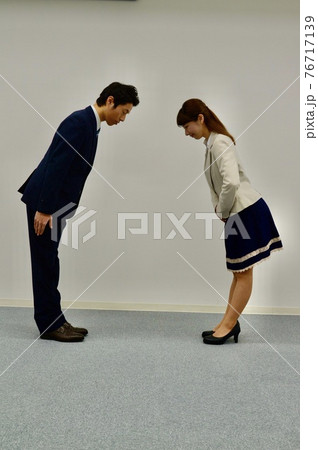 向かい合ってお辞儀をする男女