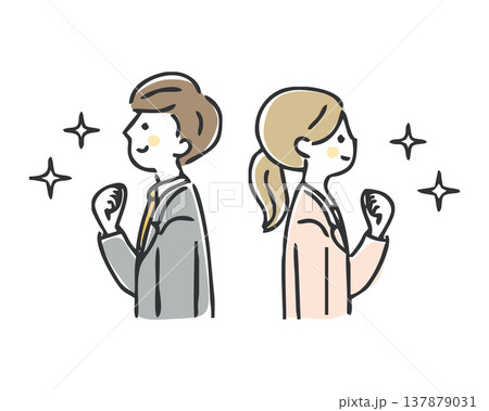 ガッツポーズするビジネスマンとビジネスウーマン