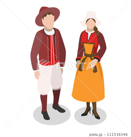 3D Isometric Flat Vector Illustration of Europeans National Clothes. Item 1