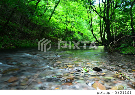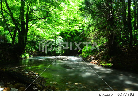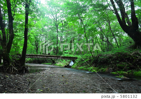 新緑の黒岳原生林と清流(新緑エコイメージ)