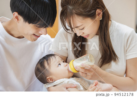 赤ちゃん ミルク 哺乳瓶 授乳 家族 育児 抱っこ