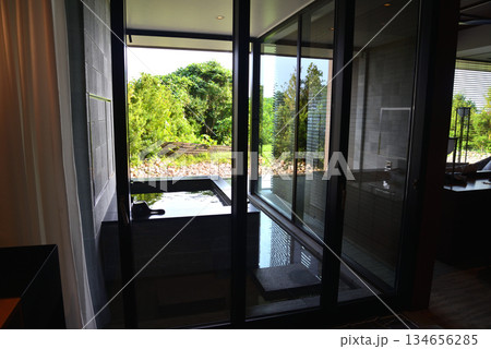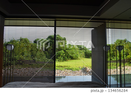 スイスの登山鉄道(ゴルナーグラート鉄道)の車窓から眺める真夏のスイス・マッターホルン山麓の里山風景