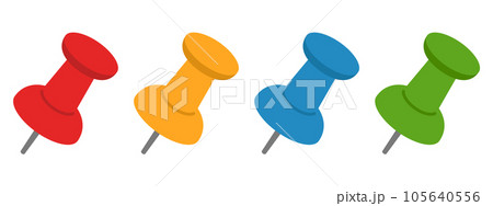 カラフルなピント画鋲・刺さった画鋲のイラストセット