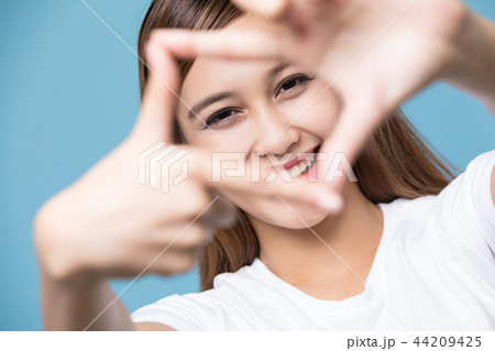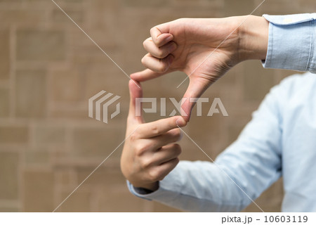 手でフレームを作る女性