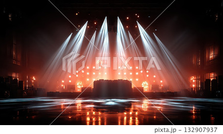Electrifying Stage Setup with Bright Lights and Dramatic Atmosphere