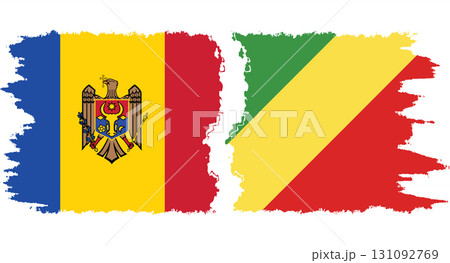 Congo-Brazzaville and Moldova grunge flags connection vector