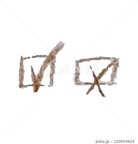 Brown check mark and cross are drawn in chalk, grunge elements, tick and cross icons, sign elements, false and true, right and wrong icons, tick cross sign elements, vector buttons for vote