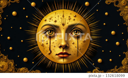 Ominous Crying Sun Over Earth as a Harbinger of Doom, Psychedelic, Premonition, Sun with a Tear