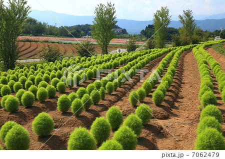 緑色のコキア畑