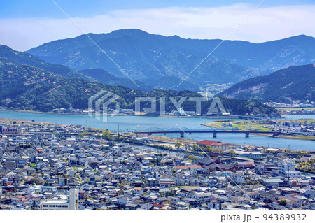 佐伯城山歴史公園から望む佐伯市街地と番匠川