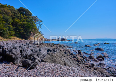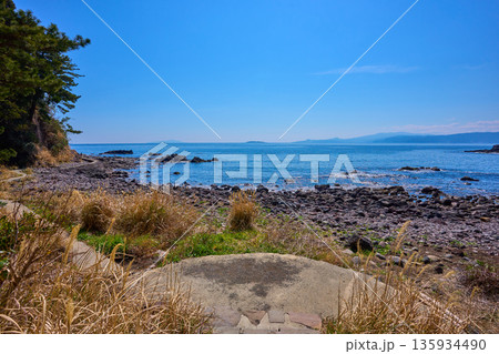 神奈川県真鶴町 真鶴半島の番場浦海岸から南側の眺望