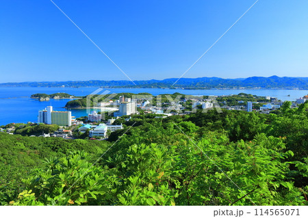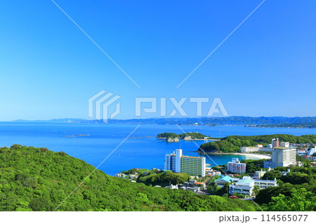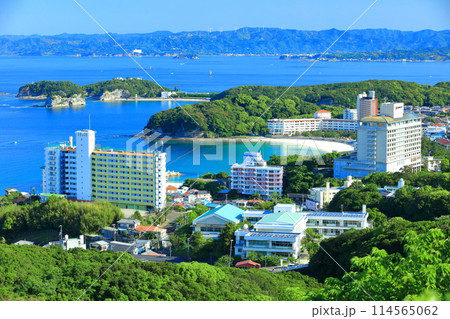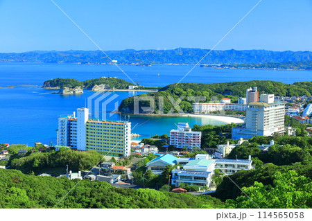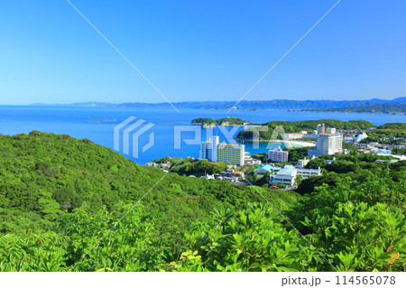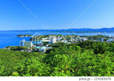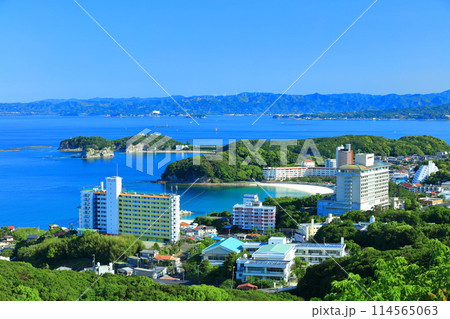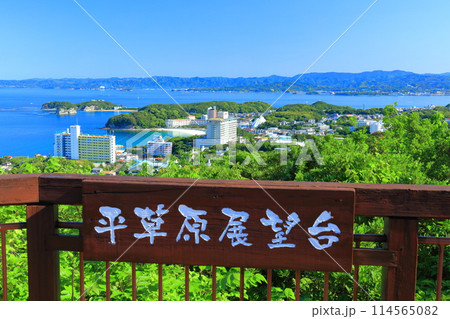 【和歌山県】平草原展望台から見た快晴の南紀白浜温泉街