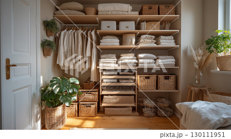 色別に並べられた布類が整った暮らしを演出 清潔感のあるおしゃれ収納例・引き出しの中の工夫