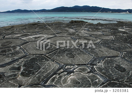奥武島の観光地、畳石、沖縄県島尻郡久米島町