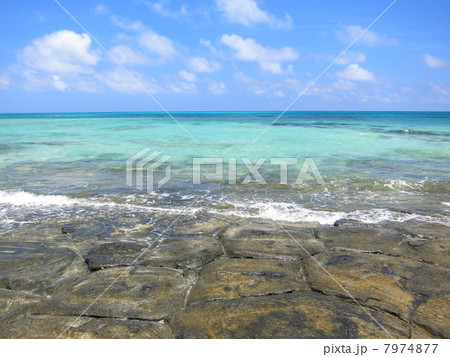 奥武島の畳石から久米島島尻崎方面を望む、沖縄県島尻郡久米島町