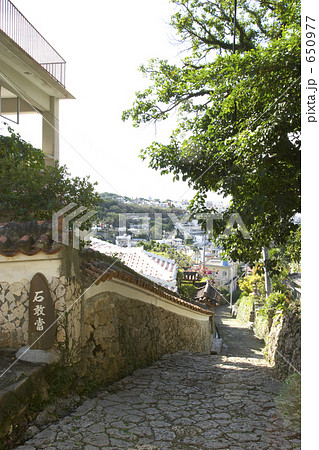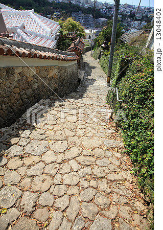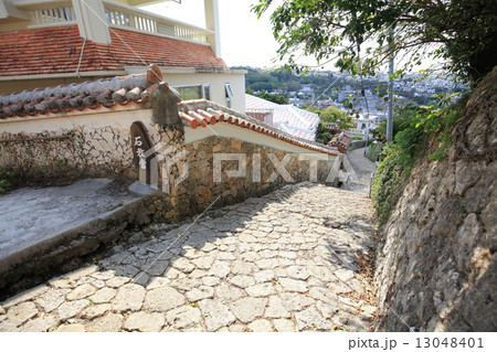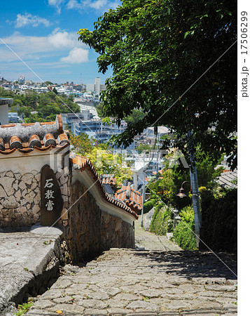 石敢當のある首里金城町の石畳道、沖縄(縦構図)
