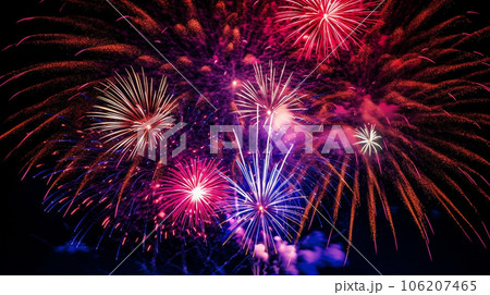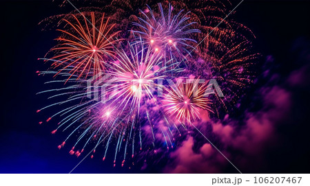 神宮外苑花火大会のオレンジ一色で美しく放物線を描く花火