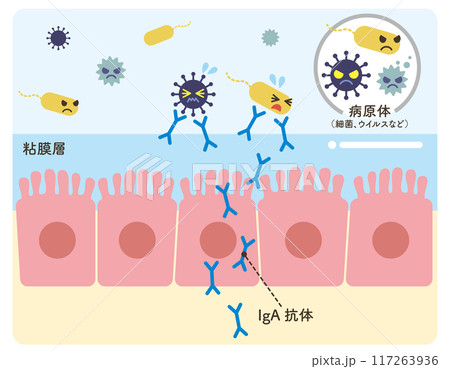 IgA抗体 上皮細胞 病原体 イラスト(抗体青系)