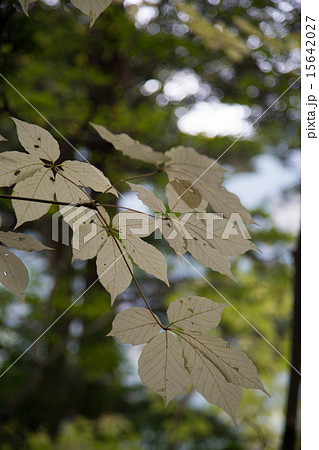 紅葉の季節には早い栃の木の病葉と書いてわくらば