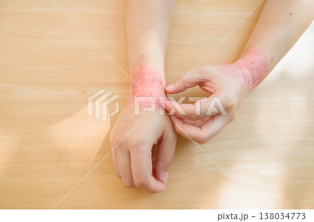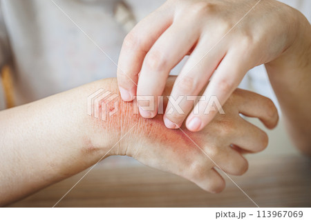 severe hand itching scratching. scary wound Itchy rash, allergies, fungal skin diseases