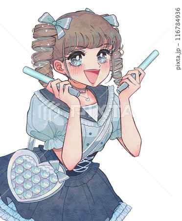 痛バ、サイリウムを持って推し活を楽しむ女の子のイラスト