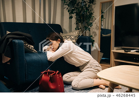 疲れてぐったりしているビジネスウーマン 若い日本人女性
