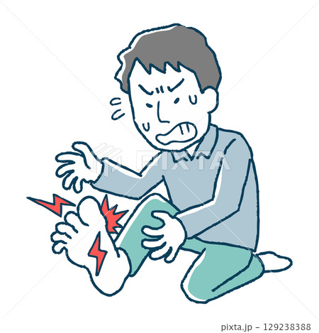 痛風で激しい痛みを感じている男性 コミカルな手書きの人物 ベクター、温かみのある線画
