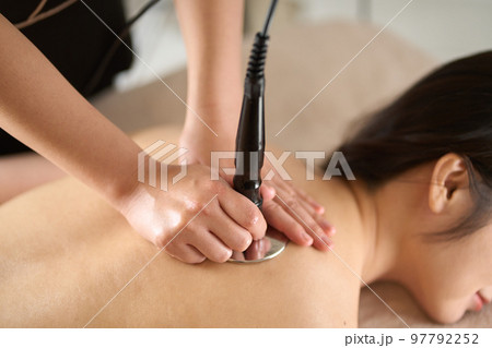 エステサロンで施術を受ける女性(背中・キャビテーション)