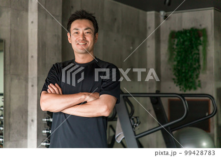 スポーツジムにいるスタッフ・トレーナー・インストラクター・作業療法士・理学療法士・柔道修復士の男性