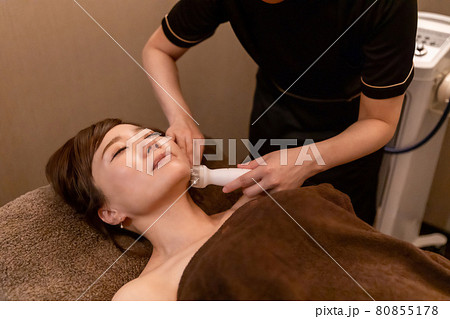 エステサロンで施術を受ける女性(顔・フェイスライン)