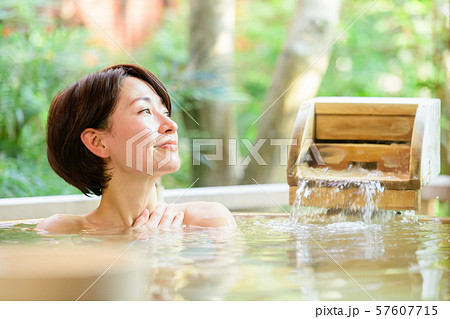 温泉 女性 露天風呂 入浴 旅行 観光イメージ
