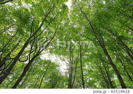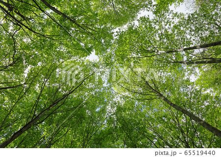 若葉のブナの森の樹冠-癒しの森 福島県只見町