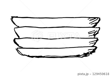 手描き線画の重ねられた丸皿イラスト | Hand-drawn line art stacked ro