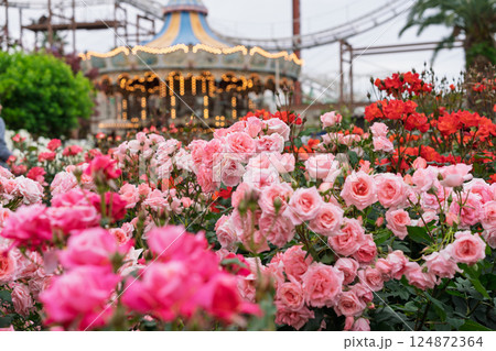 一般公開されているひらかたパークで見頃を迎えた綺麗なバラを撮影