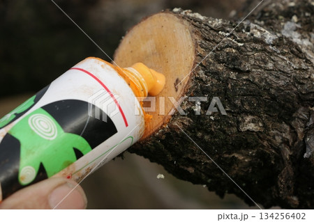 樹木伐採後、保護のために塗る癒合剤