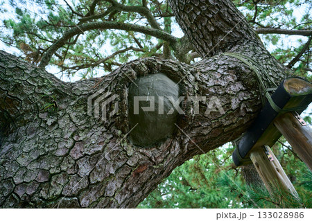 癒合剤で塞がれた木に開いた大きな穴