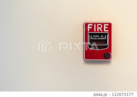 Fire alarm switch on white wall background