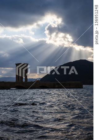 片島魚雷発射試験場跡と大村湾に差し込む光