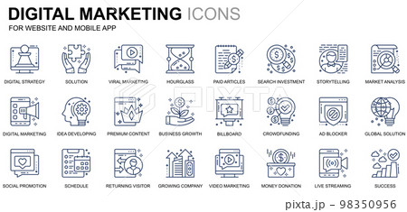 Simple Set Business and Marketing Line Icons for Website and Mobile Apps. Contains such Icons as Digital Strategy, Global Solution, Market. Conceptual color line icon. Vector pictogram pack.