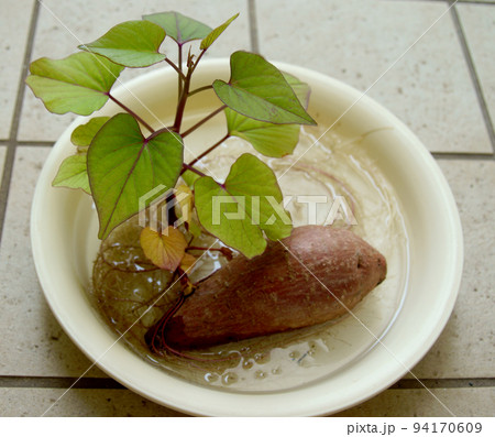 芽が出たさつまいも 水耕栽培